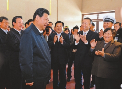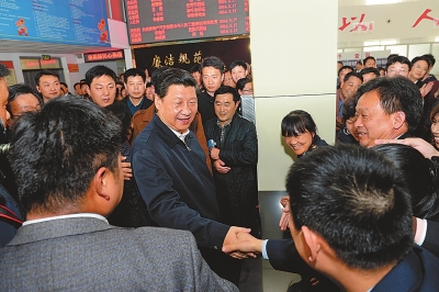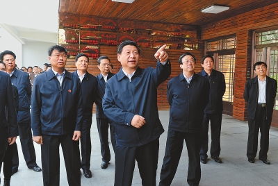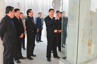 深学 细照 笃行 ——习近平总书记在兰考调研指导党的群众路线教育实践活动纪行 □记者平萍柯杨 草长莺飞时节,中原大地生机盎然,满眼尽是新绿。 河南兰考是焦裕禄精神的发祥地,也是中共中央总书记、国家主席、中央军委主席习近平在第二批党的群众路线教育实践活动中的联系点。3月17日至18日,习近平总书记一行赴兰考调研指导教育实践活动,他来到基层干部中间,走进人民群众中间,并再次感受追溯焦裕禄同志的公仆情怀、求实作风、奋斗精神和道德情操,强调要大力学习弘扬焦裕禄精神,继续推动教育实践活动取得实效,为推进党和人民事业发展、实现中华民族伟大复兴的中国梦提供强大正能量。 一路轻车简从,一路亲民务实,一路深情寄语。两天的密集行程中,习近平走村入户、访贫问苦,察看便民服务、倾听群众呼声,召开座谈会,和县、乡镇以及村基层干部亲切坦诚交流,悉心听取基层干部群众意见建议。总书记的殷殷牵挂和谆谆嘱咐,寄托着党中央、国务院对河南的亲切关怀,温暖着河南亿万父老乡亲的心田。 习近平说,兰考县的教育实践活动开局良好,热身早、载体好、起步实,活动安排既体现中央精神,又有鲜明特色,这是兰考县委认真部署和组织的结果,是兰考广大干部群众积极参与和支持的结果,也倾注了河南省委、开封市委和中央巡回督导组、省委督导组的努力。 “焦裕禄精神过去是、现在是、将来仍然是我们党的宝贵精神财富” 3月17日10时许,习近平一下飞机,就直奔兰考焦裕禄同志纪念馆。这是他时隔5年之后,第二次来到这块精神圣地。 纪念馆就坐落在兰考县城北昔日黄河故道的沙丘上。泡桐林立,松柏苍翠,纪念馆正门前的焦裕禄事迹群雕,沐浴在和煦春风和温暖阳光里。习近平总书记拾级而上,神情庄重。 馆里展出的300多幅版面、照片,90多件遗物,生动展示了焦裕禄同志鞠躬尽瘁、死而后已的光辉一生。焦裕禄调查“三害”奔走数千华里的路线图,下乡救灾时使用过的雨伞雨衣,他穿过的缝有几十个补丁的被褥……在纪念馆里,习近平倾听着,询问着,沉思着,深切缅怀这位人民的好公仆、县委书记的好榜样。“再次踏上兰考土地,依然心情很不平静。刚才,尽管看的听的都比较熟悉,但我还是想多看一看、多听一听,因为这里的每一件实物、每一个故事,都能引起我的心灵共鸣。”总书记深情地说。 焦裕禄对子女要求严格,发现儿子焦国庆看了一场“白戏”后,他亲自制定了《干部十不准》。在写有《干部十不准》的展览墙前,总书记驻足良久,仔细观看。习近平感慨地说,“十不准”内容非常有针对性。就拿看白戏这条说,除了规定一律不准送戏票之外,还强调不能把前10排的票光卖给机关和干部,这就教育领导干部如何针对身边存在的突出问题,研究制定具体举措。 在纪念馆序厅,看到焦裕禄的五个子女焦跃进、焦守凤、焦国庆、焦守云、焦守军等候在那里,习近平快步走上前去,和他们一一握手,亲切交谈。