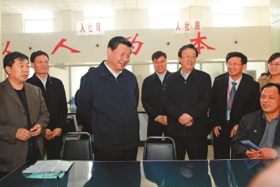 3月17日上午,在焦裕禄同志纪念馆,习近平总书记对大家说:“我们这一代人是深受焦裕禄同志事迹教育成长起来的,焦裕禄的形象一直在我心中。” 学习弘扬焦裕禄精神,学习什么、弘扬什么?总书记进行了精准概括:要特别学习弘扬焦裕禄同志“心中装着全体人民、唯独没有他自己”的公仆情怀,要特别学习弘扬焦裕禄同志凡事探求就里、“吃别人嚼过的馍没味道”的求实作风,要特别学习弘扬焦裕禄同志“敢教日月换新天”、“革命者要在困难面前逞英雄”的奋斗精神,要特别学习弘扬焦裕禄同志艰苦朴素、廉洁奉公、“任何时候都不搞特殊化”的道德情操。 学习弘扬焦裕禄精神,怎样学习、怎样弘扬?总书记做出了明确指示:“深学、细照、笃行”。深学,就是要组织党员、干部一点一滴学习焦裕禄同志的事迹,一字一句学习焦裕禄同志的言论,重点把焦裕禄精神学习好、领会透,不能大而化之,粗看都知道,细问不明白,没有触及灵魂。学习要同教育实践活动紧密结合起来,从相互融通中把握党的群众路线的本质要求,把握改进作风的重点。细照,就是要引导党员、干部把焦裕禄精神作为一面镜子从里到外、从上到下反复照一照,深入查摆自己在思想境界、素质能力、作风形象等方面存在的问题和不足,从差距中增强动力和措施。笃行,就是要引导党员、干部向焦裕禄同志看齐,从今天做起,从眼前做起,从小事做起,像焦裕禄同志那样对待群众、对待组织、对待事业、对待同志、对待亲属、对待自己,像焦裕禄同志那样生命不息、奋斗不止,努力做焦裕禄式的好党员、好干部。 “开展教育实践活动和弘扬焦裕禄精神是高度契合的,要把学习弘扬焦裕禄精神作为一条红线贯穿活动始终,希望通过弘扬焦裕禄精神,为推进党和人民事业发展、实现中华民族伟大复兴的中国梦提供强大正能量。”总书记铿锵有力的话语在兰考大地回响。 总书记时刻记挂着民生民情,调研中,他步履坚定地丈量着民情,心细如发地感受着民生。 位于阳光大厦的兰考县为民服务中心外,“让权力在阳光下运行”的大字格外醒目。17日15时,习近平走进一楼大厅,向工作人员和前来办事的群众问好,他先后来到地税局、财政局、规划局、房管中心的服务窗口,了解工作流程。在民政局窗口前,习近平询问办结婚证都需要什么证件,每天来办证的多不多,还特意让工作人员递过来一本结婚证,看看样式,他亲切地对刚刚在这里领了结婚证的一对名叫杨坤、李丹丹的小夫妻说,“祝福你们!”
