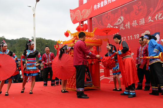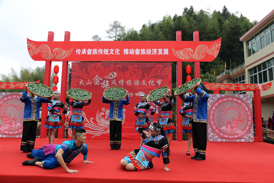 太山畲族婚礼秀,为来宾们展示了古老的畲族文化。畲族婚礼是畲族文化最大的特色,不仅富于情趣,而且奇特新颖。
