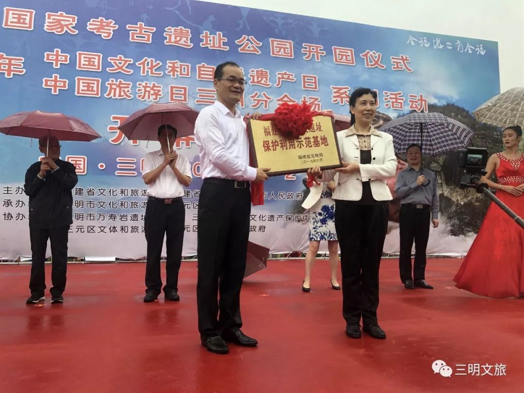 为迎接新中国成立70周年,深入学习贯彻习近平总书记关于万寿岩遗址保护、乡村振兴战略、发展全域旅游等系列重要讲话和批示精神,做好“中央苏区、老工业基地、绿色生态、文明城市”四篇文章,促进“文化+旅游”融合发展。6月2日上午,万寿岩国家考古遗址公园开园仪式暨2019年中国文化和自然遗产日、中国旅游日三明分会场活动在三元区岩前镇万寿岩国家考古遗址公园举行。三明市人民政府市长余红胜,省文化和旅游厅党组成员、省文物局局长傅柒生,三明市人民政府副市长张文珍、中国科学院古脊椎动物与古人类研究所研究员尤玉柱出席活动。