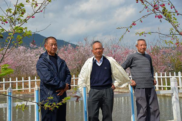 “项目引荐、公司投资、现场管理,我们三位合作者都是七旬老人,加起来有200多岁了!”台商简文通先生对来到清流东方龙樱花生态科技有限公司的客人总会这么介绍一句。 2011年12月,在台北召开的世界马氏宗亲恳亲大会暨各姓氏宗亲侨界联谊大会期间,简文通与前去参加会议的清流退休干部马一坤相识,并在他的力荐下于次年到清流投资,建立了占地2000多亩的樱花基地,种有红粉佳人、中国红、香水樱、大丰樱、八重樱等樱花品种,总计30余万株。平时经常一起交流走动,当地马景福老人也加入这个团队,负责基地日常管理。 三位投缘的“小伙伴”一心放在樱花上,经过多年的规划和发展,该基地现已成为全国规模最大、数量最多、品种最全、花期最长的“四最”樱花基地。自2016年开始,县里镇上依托该基地举办清流樱花文化旅游节,有民俗表演、农民书画、摄影展、美食汇,以及台商联谊、政银企对接、政策学习宣传会等丰富内容。2016年,该基地获CCTV6“全国最佳赏樱基地”的殊荣。 邓国光:茶王兄弟同创业