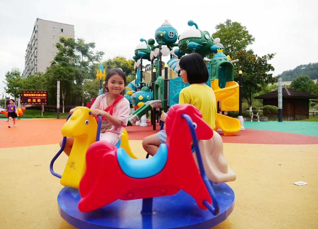 8月17日,在新改造完成的清流县孔子公园微乐园,孩子们滑滑梯、坐木马、过独木桥……欢乐的嬉笑声频频传来。
