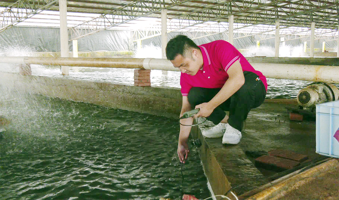 服务队成员们先后到灵地镇清泉特种水产养殖场、赖坊镇龙源生态水产养殖场,实地走访,察看养殖场的整体布局、设施设备,对养殖场养殖水体进行采样分析,检测养殖场水体温度、PH值、溶氧度等水质情况。