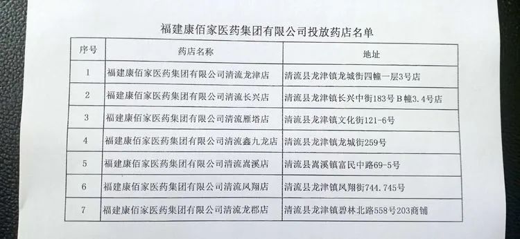 该公司将在清流4家药店(附名单)共投放的20000片对乙酰氨基酚、4800片扑感敏,从2022年12月29日开始销售,时间9:00-18:00,每人限量购买不超过3日用量(6片),每人凭身份证限购其中一种,售完为止。