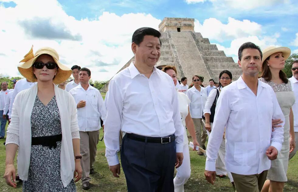 2013年6月6日,习近平夫妇在墨西哥总统夫妇的陪同下参观。
