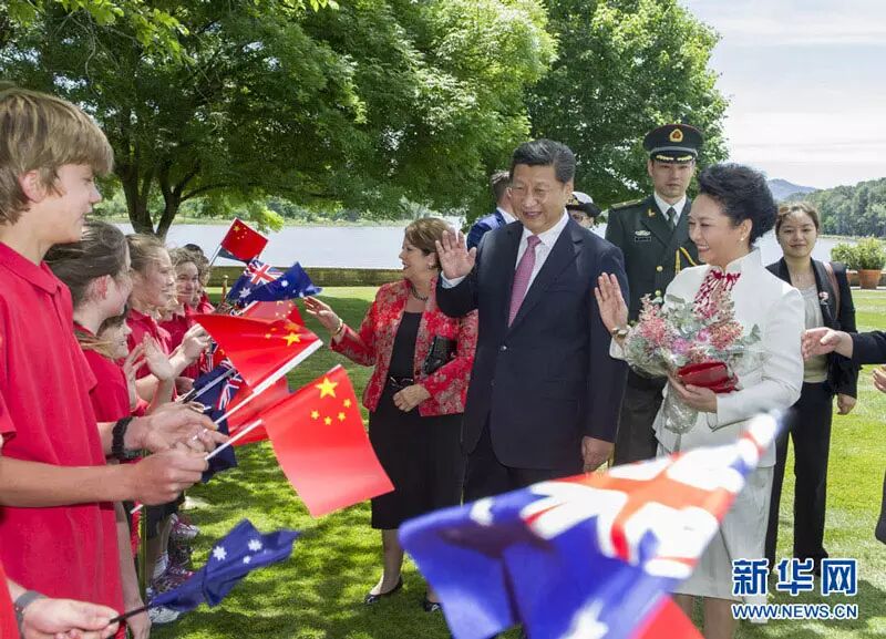 2014年11月17日,中国国家主席习近平在堪培拉会见澳大利亚总督科斯格罗夫。会见前,科斯格罗夫在总督府草坪为习近平举行隆重欢迎仪式。习近平和夫人彭丽媛抵达时,受到科斯格罗夫总督夫妇热情迎接。新华社记者谢环驰摄