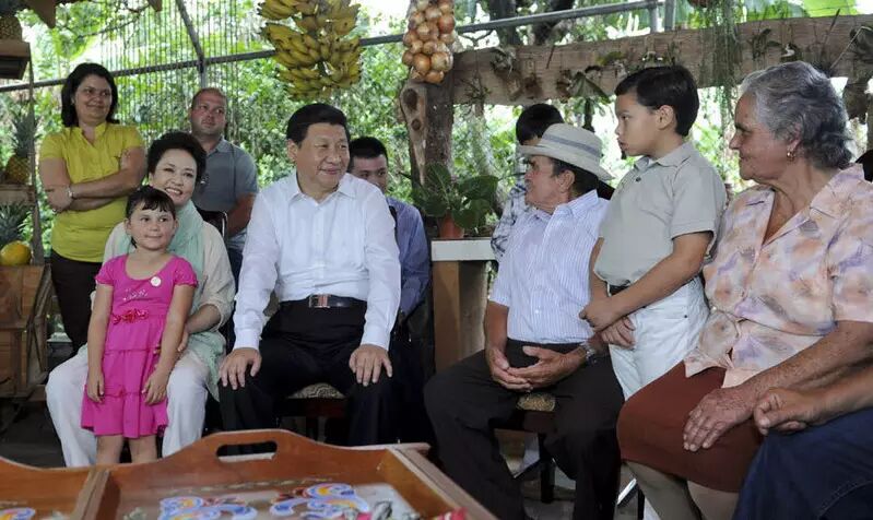 2013年6月3日,正在哥斯达黎加进行国事访问的国家主席习近平和夫人彭丽媛走访当地农户萨莫拉一家。 这是习近平与当地农户萨莫拉一家人亲切交流。张铎 摄
