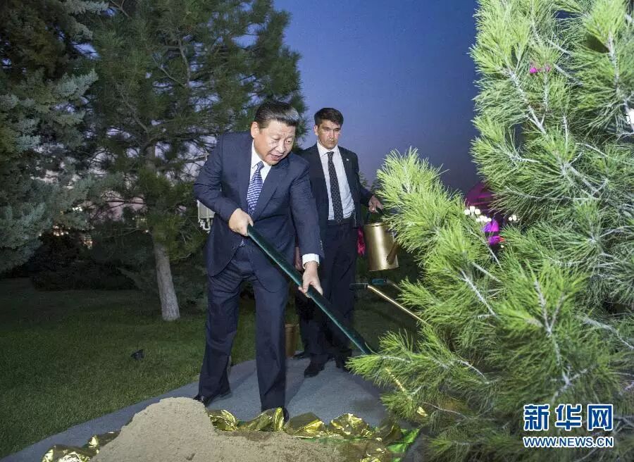 2013年9月3日,中国国家主席习近平在阿什哈巴德元首林种下一株象征友谊的杉树。 新华社记者王晔摄