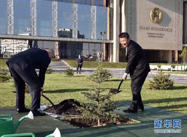 习近平与卢卡申科共同种植云杉树