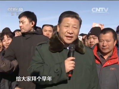 习近平:大家好,春节将至,农历的鸡年就要到了,我到这里来看望一下大家,给大家拜个早年。我们现在2020年要建成全面小康,要抓好脱贫工作。所以在脱贫的道路上,在奔小康的道路上一个也不能少。我们要解决贫困户的问题,解决贫困县的问题,所以我今天到这里,到德胜村来,我就是调研一下脱贫致富的问题。现在脱贫不能胡子眉毛一把抓了,要精准,要扶真贫、真扶贫,一定要精准。我们要把扶贫工作抓在手上,这也是我一直牵挂的事情,也是我到每一处去看的事情。这一次到张家口来,到张北来,到德胜村来,我就在这里解剖解剖麻雀,也在这里通过向大家拜年,给全国各族人民拜年。祝大家鸡年吉祥、万事如意。