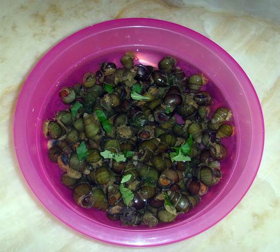吃螺,关键洗螺极为重要。流传民间洗螺办法是,先将溪螺洗干净,放进盛满清水的水桶里,把菜刀、柴刀等铁器插进螺堆。再往水面滴上几点茶油,螺喜闻铁锈味,第二天就可以发现这些铁器上爬满了螺,桶底沉下一层螺吐出来的泥巴,母螺还产下很多小螺。接着再次清洗溪螺,倒掉泥巴小螺后换清水重复处理,两、三天后溪螺就干净多了。