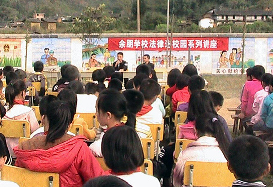 为了认真落实《关于开展2011年“12.4”全国法制宣传日宣传活动的通知》精神,同时充分利用今年“12•4”法制宣传日宣传教育活动,加强学生的法制观念和法律意识,提高学生遵纪守法的自觉性和自我保护意识,营造文明平安和谐的校园氛围。12月5日下午,余朋乡派出所干警继11月16日的法制讲座后,再次为余朋学校全体师生作了一场精彩的法制教育专题讲座。