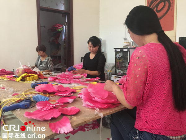 国际在线报道(记者 张硕):社火是中国民间庆祝春节的一种狂欢娱乐活动,包括高跷、旱船、舞狮、舞龙、秧歌等,具体形式随地域而有较大差异。中国中部河南省许昌市建安区灵井镇的霍庄村,生产社火道具的历史已有上百年。“小作坊里搞生产,销路要靠自己问”的经营方式,让这种传统手工业一度难以为继。近几年,随着互联网的快速发展和普及,霍庄村成了远近闻名的“淘宝村”,村民们只要在家上网并轻点鼠标,社火道具就可以行销国内外,村民们也因此很快脱贫致富。