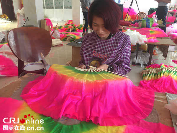 初夏时节,记者走进了以社火道具生产而闻名的灵井镇霍庄村。从村里走过,不时有快递公司的车辆往来。在几乎每一户村民家中,都能看到繁忙运作着的戏服道具生产线。霍庄村负责人霍军政告诉记者:“现在我们村的社火道具产品有上千种,手工业有上百年的历史。产品销往东南亚、欧美以及国内的各个地方。只要用到社火道具的,都知道我们霍庄村。”